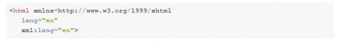 En este caso ocurre lo mismo con el atributo xml:lang, es una herencia de XHTML que podemos eliminar, quedando finalmente la etiqueta de la siguiente manera: